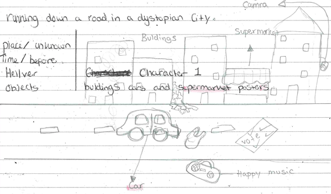 In our school, we teach a genre study unit to Year 9, where we explore two different genres. When teaching this class about dystopian fiction, many lessons included creating text world diagrams and some drawings. Later in the unit, I also implemented both as planning tools. When writing their own dystopian fiction, I instructed students to draw a text world diagram as the initial stage of their planning. This enabled them to have a clearly defined physical setting, and temporal setting, with the objects that make up these spaces. This proved to be an effective planning tool, with a teaching assistant commenting on the merits of the simple structure that is easy for students to follow.